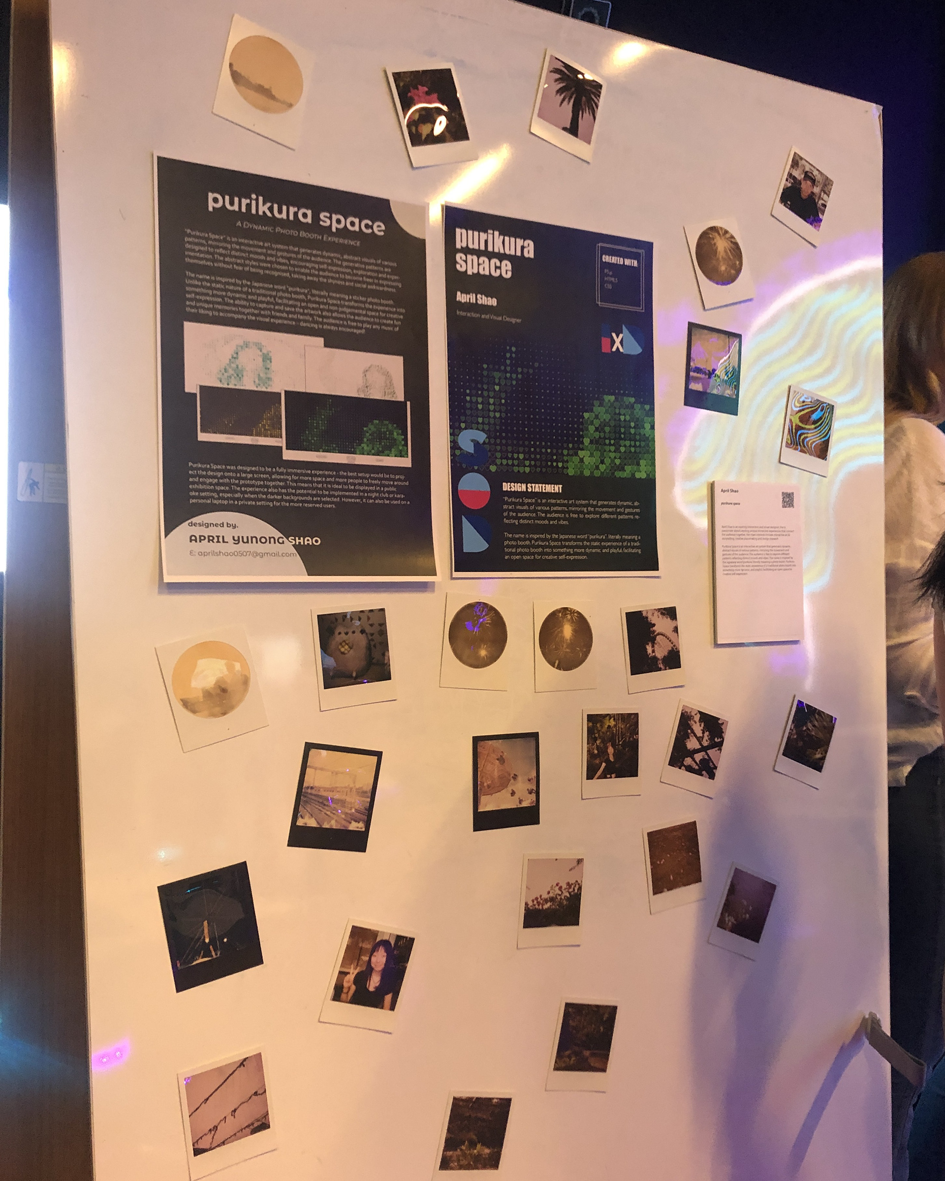 “Purikura Space” is an interactive art system that generates dynamic, abstract visuals of various patterns, mirroring the movement and gestures of the audience. The audience is free to explore different patterns reflecting distinct moods and vibes. The name is inspired by the Japanese word “purikura, " meaning a photo booth. Purikura Space transforms the static experience of a traditional photo booth into something more dynamic and playful, facilitating an open space for creative self-expression.